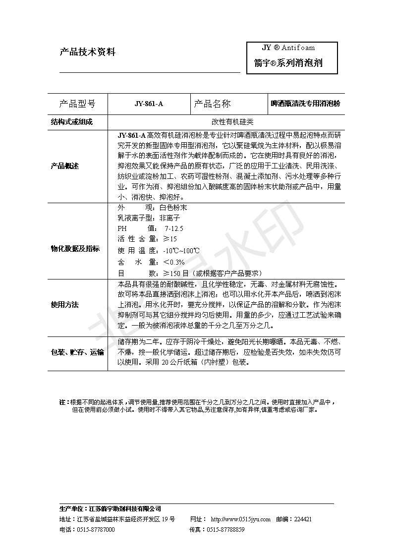 JY-861-A啤酒瓶清洗專(zhuān)用消泡粉