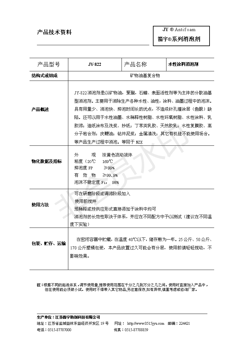 聚氨酯涂料用礦物油消泡劑JY-822